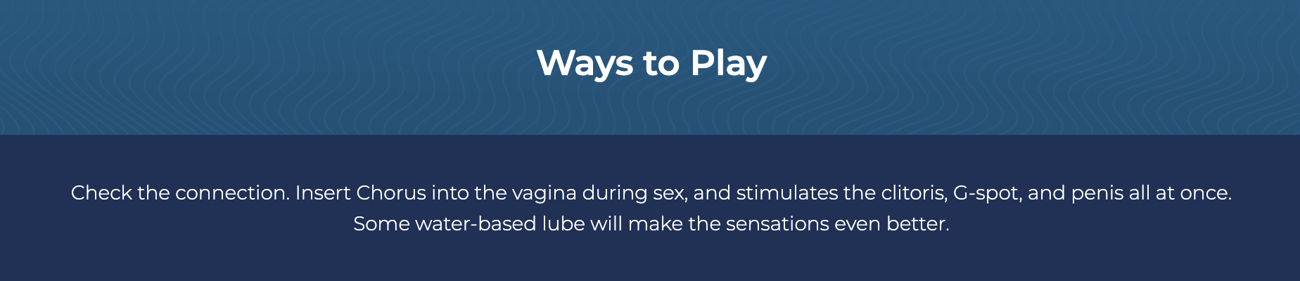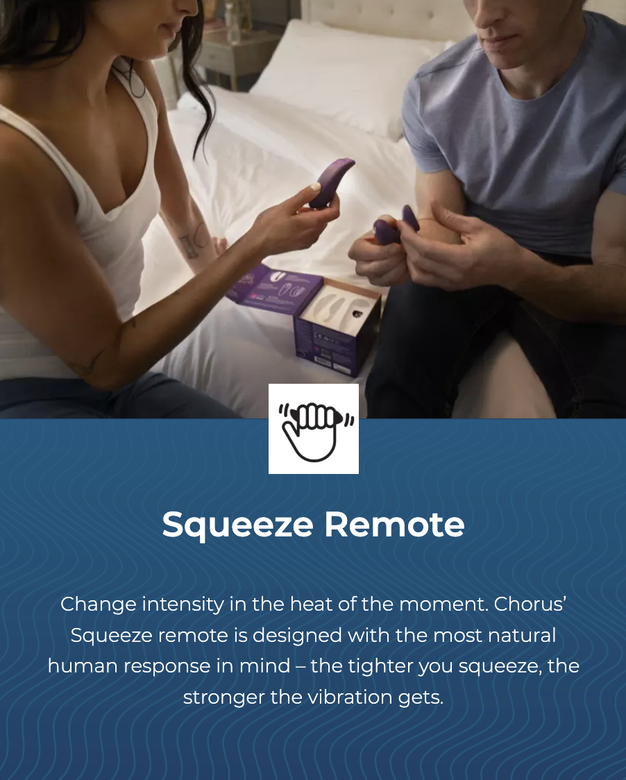 Designated for couples. This lovely toy can bring your relationship and erotic pleasure to another peak. You can also play and share control of Chorus simultaneously with the chat and video call functions on the App. Big fun for long-distanced lovers!